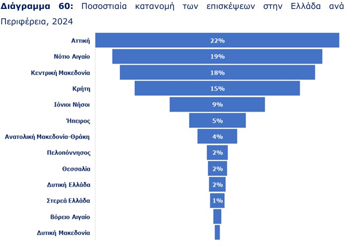 Πόσες χιλιάδες επισκέψεις πραγματοποιήθηκαν ανά Περιφέρεια, το 2024;
