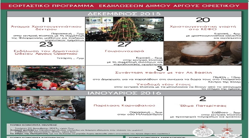 Διαβάστε περισσότεραΔείτε το Εορταστικό πρόγραμμα εκδηλώσεων για όλο το Δήμο Άργους Ορεστικού.
