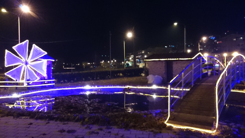 Πολύ ωραίος φωτισμός και άκρως Χριστουγεννιάτικη εικόνα με το που μπαίνεις στην είσοδο της πόλης.