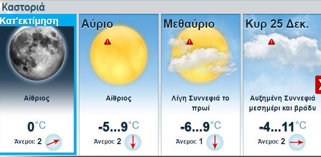 Αναλυτικά – μεγάλα μετεωρολογικά sites- προβλέπουν για την Καστοριά: