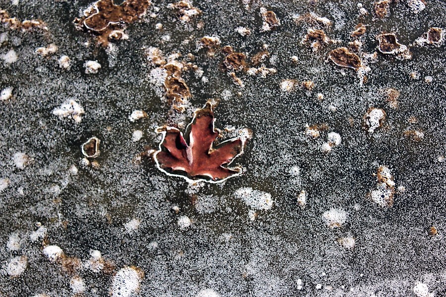 Εγκλωβισμένο φύλλο στα κρυστάλλινα νερά της λίμνης…