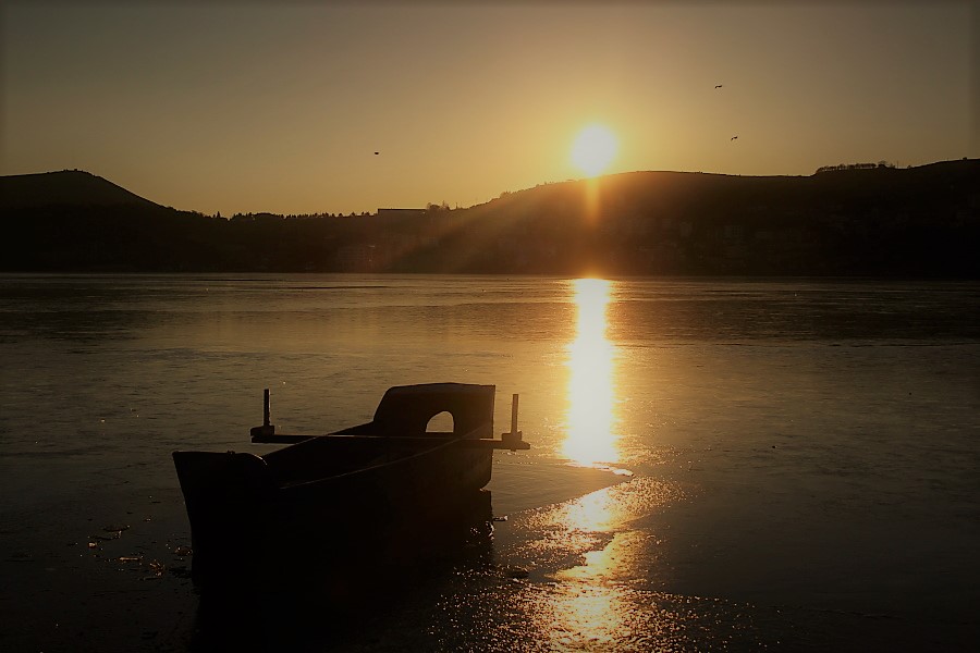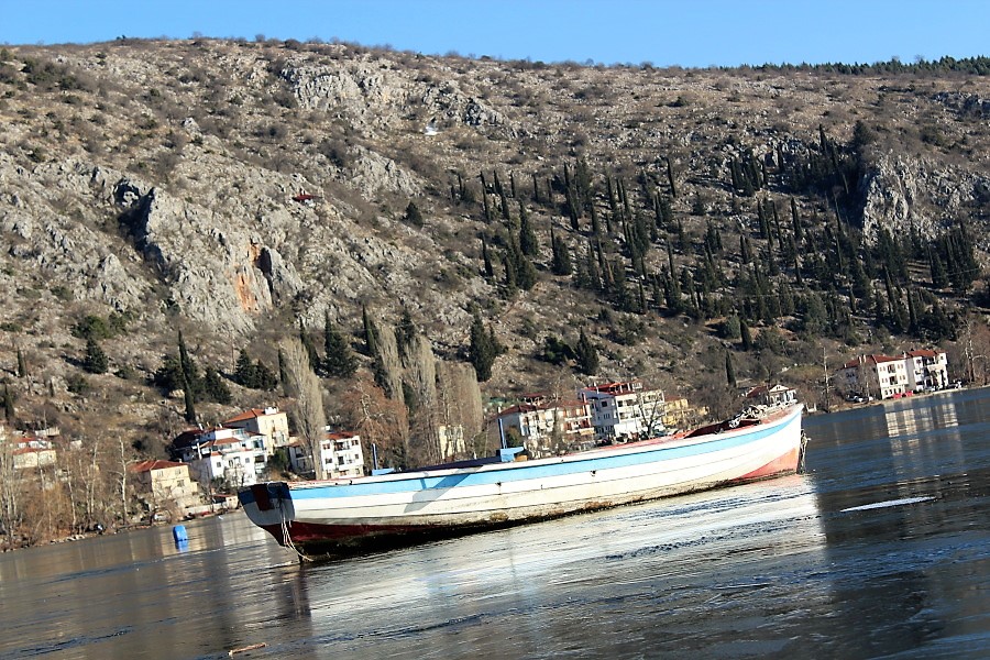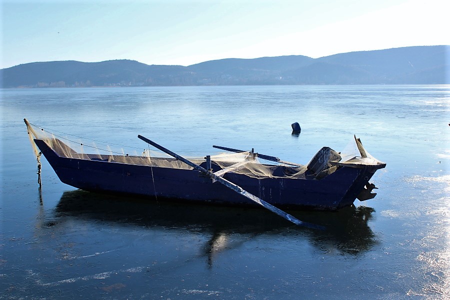 Οι βάρκες αγέρωχες, αδύναμα εγκλωβισμένες σε κομμάτια πάγου, ενέπνεαν τους περαστικούς να τις μετακινήσουν…