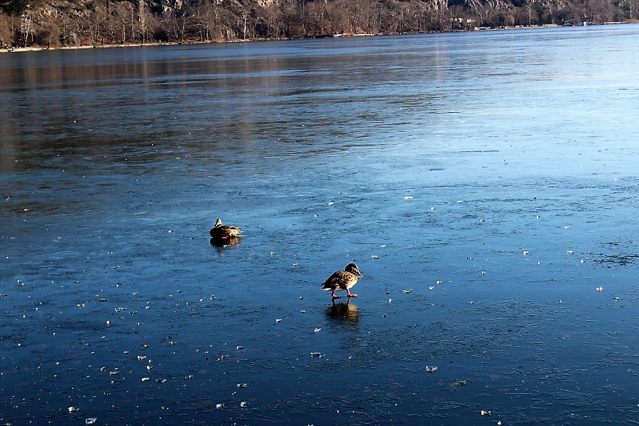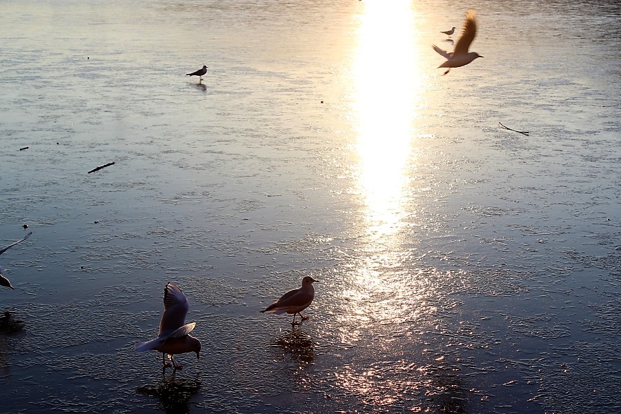 Μικροσκοπικά πτηνά γλιστρούσαν στον πάγο, την στιγμή που κάποιοι απολάμβαναν τον καφέ τους κάτω από τις ζεστές ακτίνες του ηλίου.