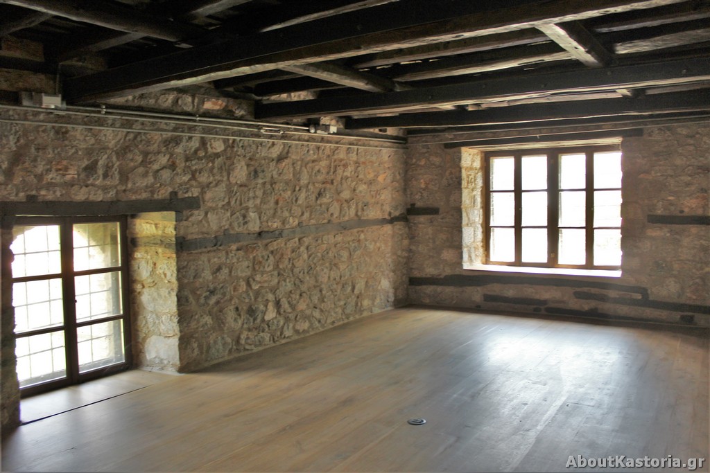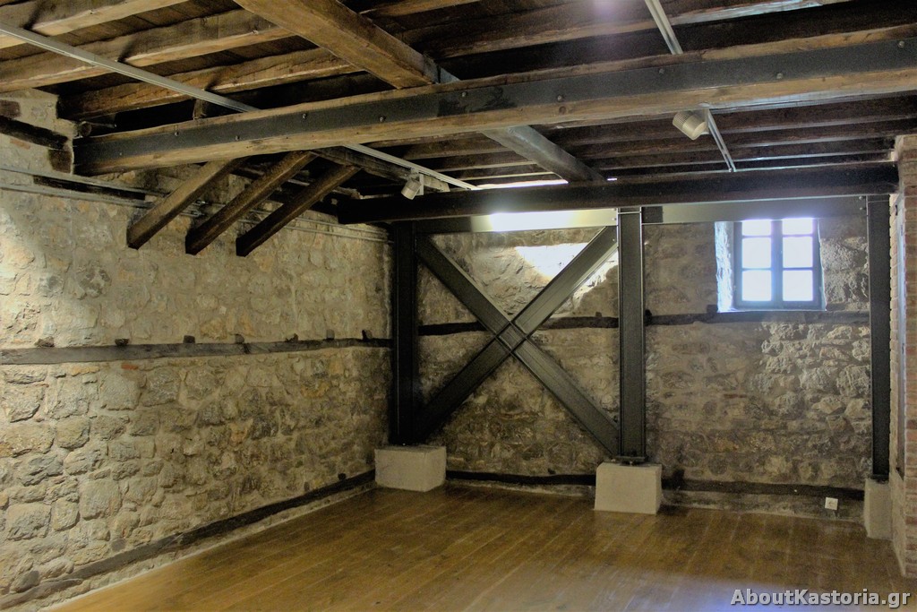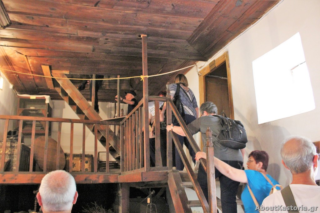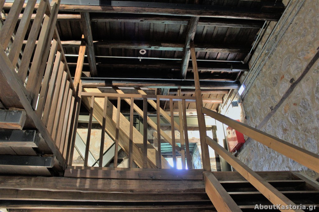Στον πάνω όροφο θα έχετε την ευκαιρία να δείτε τον τρόπο με τον οποίο κατασκεύαζαν τον πάνω όροφο ενός αρχοντικού εκείνη την εποχή. Δοκάρια περίτεχνα ενωμένα…