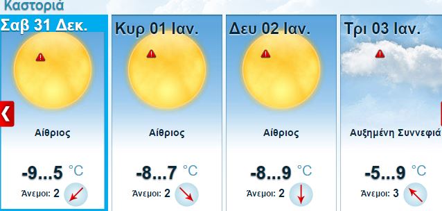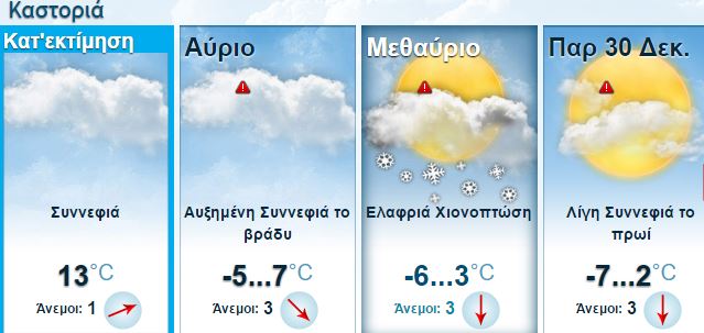 Γ. Η θερμοκρασία θα κυμανθεί σε χαμηλά επίπεδα και θα σημειωθεί παγετός κατά τόπους ολικός στα κεντρικά και βόρεια.
