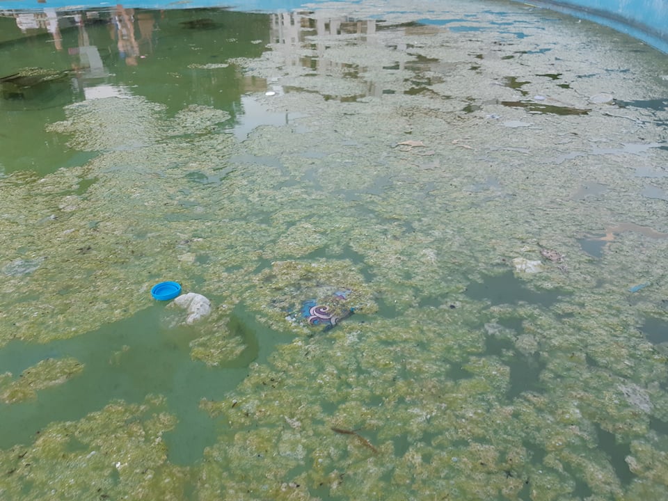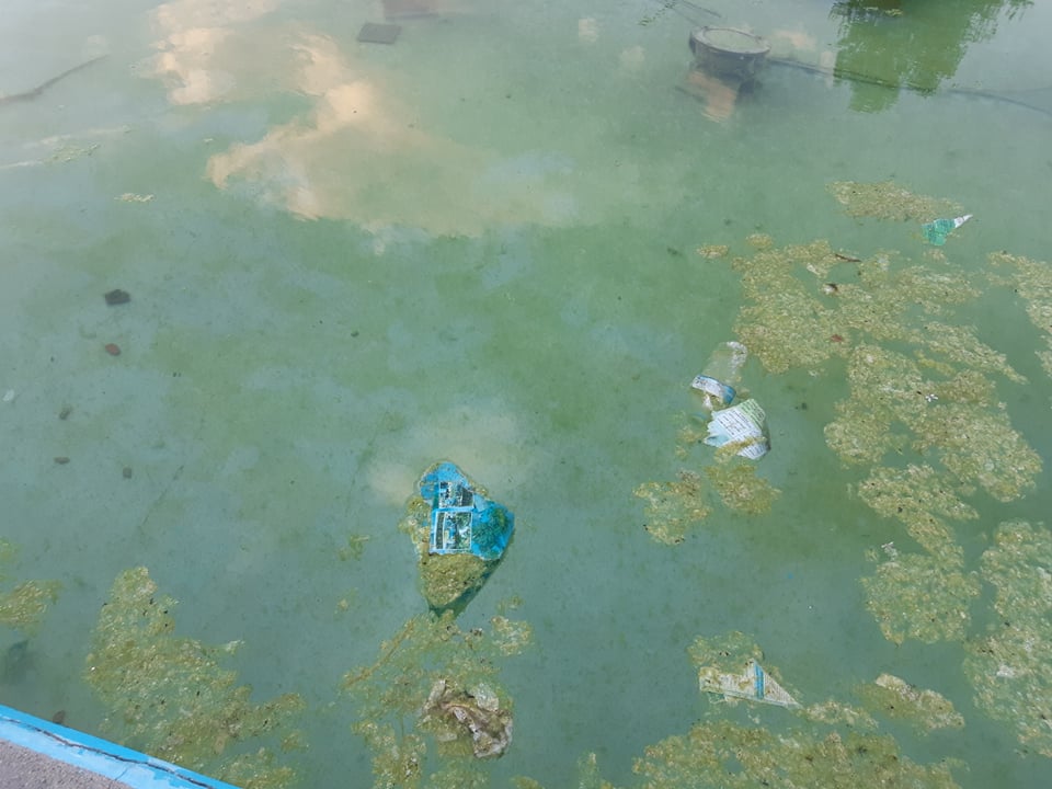 Το συντριβάνι καλύφθηκε από μια πράσινη γλοιώδη επιφάνεια, σκουπίδια επιπλέουν στην επιφάνειά του, ενώ ο πυθμένας του…φύτρωσε (!).