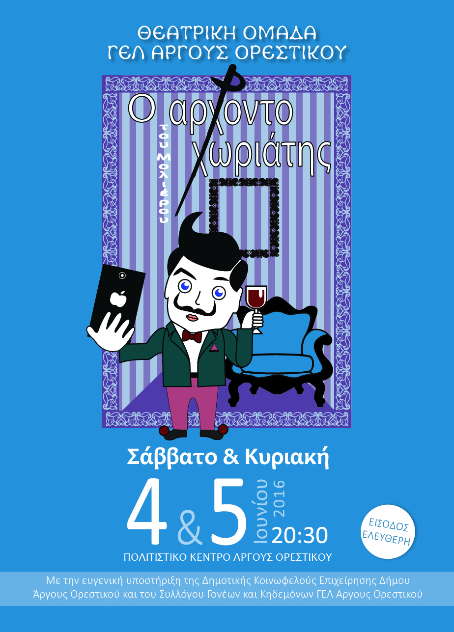 Η θεατρική ομάδα Γ.Ε.Λ. Άργους Ορεστικού παρουσιάζει τον “Αρχοντοχωριάτη” του Μολιέρου.