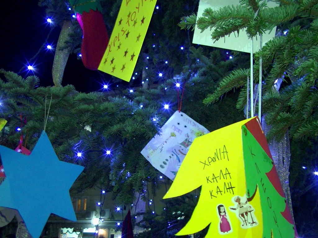 Οι μαθητές των σχολείων, αφού στόλισαν το δέντρο με τις χριστουγεννιάτικες κάρτες που μόνοι τους έφτιαξαν στέλνοντας μηνύματα αγάπης, αλληλεγγύης και αισιοδοξίας, τραγούδησαν τα κάλαντα και παρέσυραν και τους μεγάλους στο πνεύμα των εορτών.