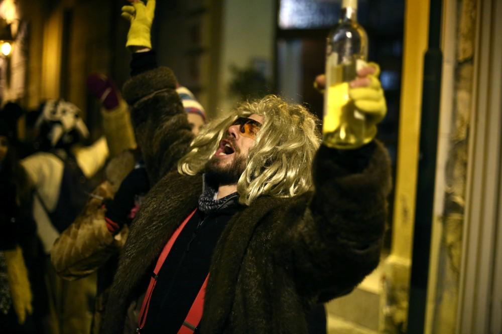 Έτσι και φέτος στις 6 και 7 Γενάρη, λίγο μετά τη δύση του ηλίου και αφού το θερμόμετρο είχε πάρει την κατιούσα, άνθρωποι κάθε ηλικίας, Καστοριανοί και εκατοντάδες επισκέπτες από την Ελλάδα και το εξωτερικό, ξεχύθηκαν στους δρόμους μ’ ένα μπουκάλι κρασί ή τσίπουρο στο χέρι, χωρισμένοι σε μπουλούκια με τη συνοδεία χάλκινων και κρουστών οργάνων. Μουσικοί από τη Γουμένισσα και τη FYROM έντυσαν τους κεντρικούς δρόμους και τις πλατείες με τις οργιαστικές μελωδίες του Μπρέγκοβιτς και όσο προχωρούσε η νύχτα και άδειαζαν τα μπουκάλια όλοι ένιωθαν για λίγο πρωταγωνιστές σε ταινία του Κοστουρίτσα. Και βέβαια δε θα μπορούσαν τα Ραγκουτσάρια φέτος να μην έχουν προεκλογικό χρώμα με συνθήματα στα πλακάτ όπως «Είμαστε αποφασισμένοι να ψηφίσουμε και μεθυσμένοι» ή «Στο κεφάλι πέτρα, αν πάρουν νέα μέτρα» ανάμεσα σε antifa στενσιλ στους τοίχους, επίκαιρα καρτελάκια καρφιτσωμένα στις μπλούζες «je suis Charlie» και το all time classic «ΠΑΟΚ».