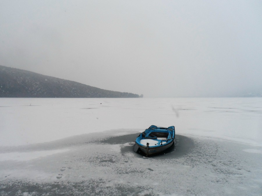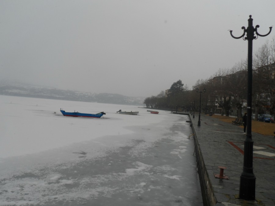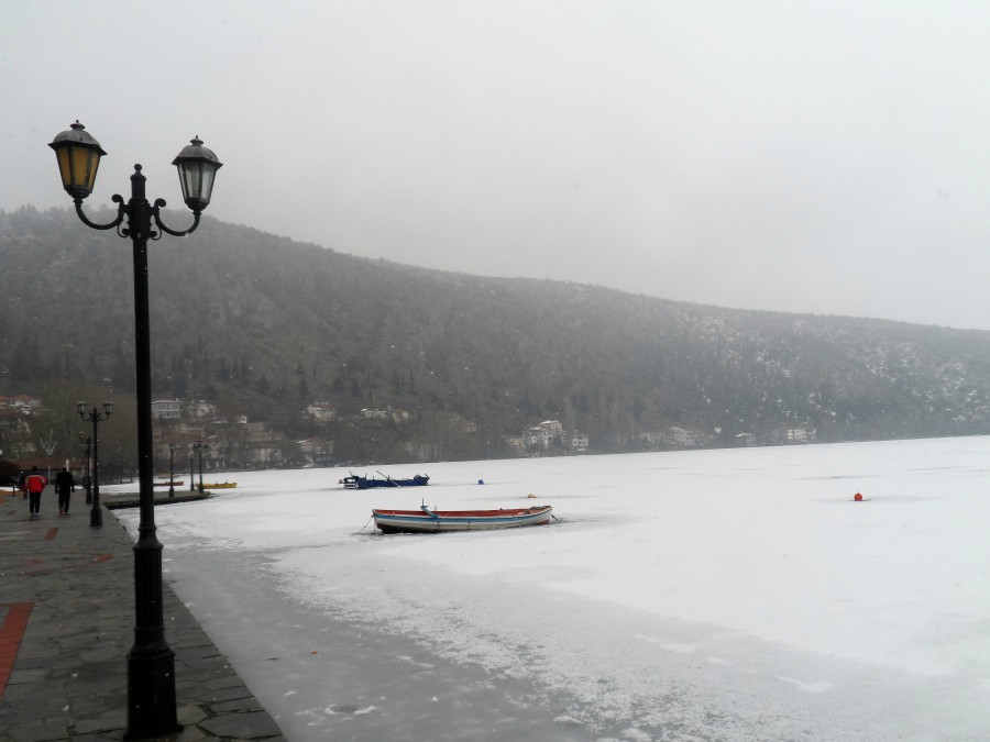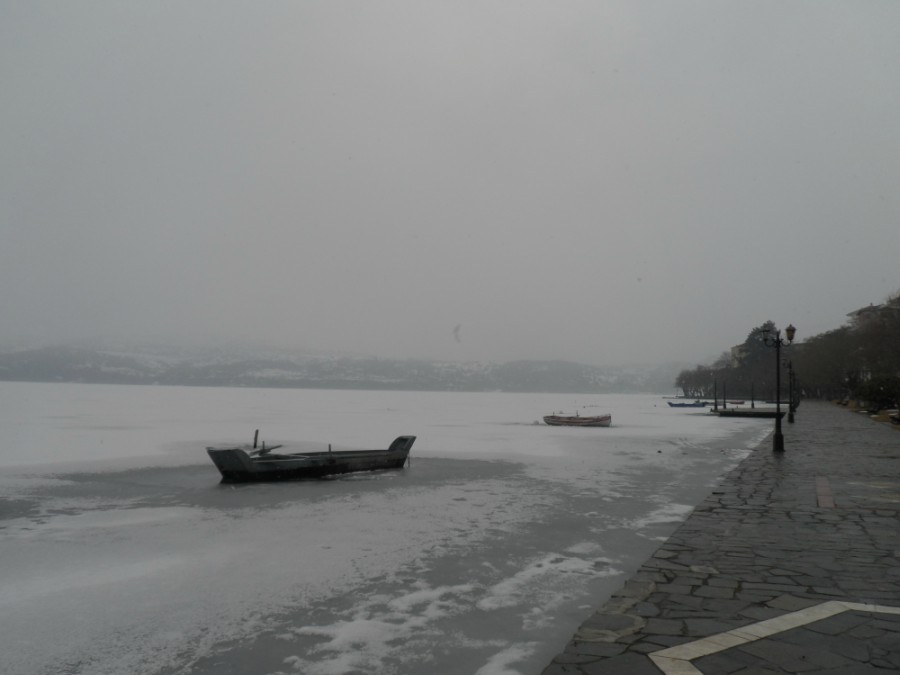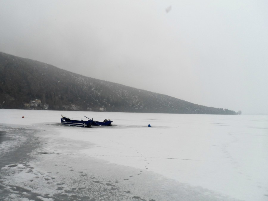 Ο παραδοσιακός Καστοριανός στόλος σφηνωμένος -ακόμα- στα παγωμένα νερά της λίμνης προκαλεί ιδιαίτερη αίσθηση…