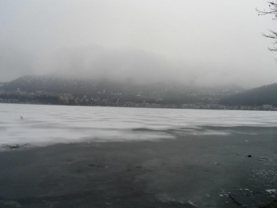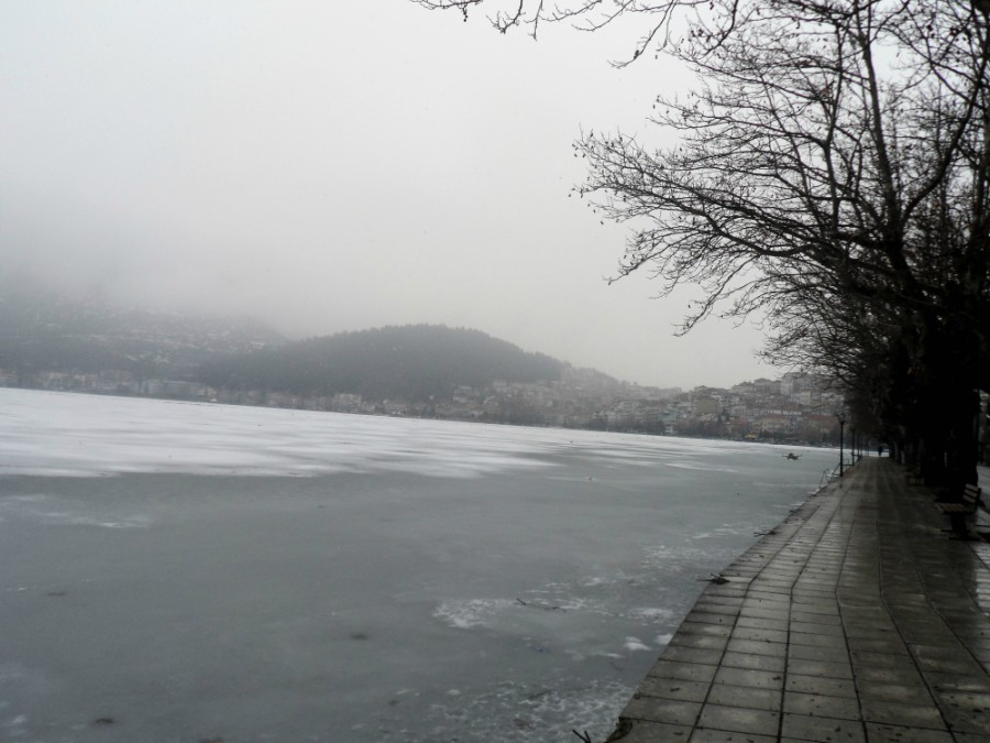 Η ομίχλη στο βάθος κρύβει καλά το Δισπηλιό…Η λίμνη; “Ξύπνησε”;